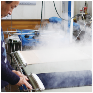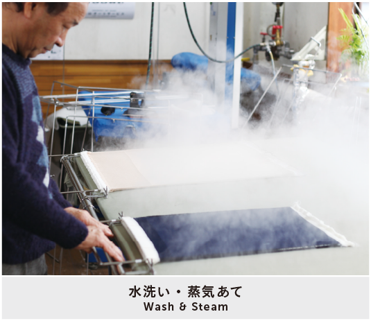 The fabric is washed in its raw state and then steamed to smooth it out. Since the fabric is pre-shrunk through washing, there is almost no shrinkage during subsequent washing.