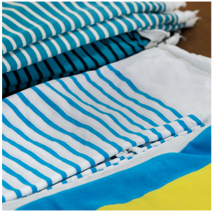 Every piece is cut by hand, with the stripes aligned perfectly.